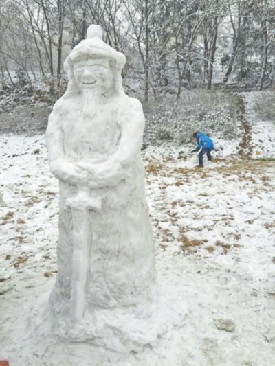 下雪了,堆一個(gè)雪人玩玩。首席記者何正權(quán)攝影