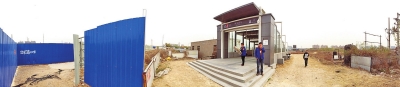 昨天,記者來(lái)到博學(xué)路地鐵站附近走訪,計(jì)劃從明理路出發(fā)到地鐵站內(nèi)。根據(jù)站外工地一位工人的指引,記者進(jìn)了工地大門后沿著一條由鐵皮圍成的小路一直走,接連拐了七八個(gè)彎,步行了十多分鐘后才見到地鐵站。地鐵站外雜草叢生,一片荒涼。站在該地鐵站外向四周張望,看到的全是工地。工地內(nèi)插著小旗子,還停放著幾臺(tái)挖掘機(jī)。