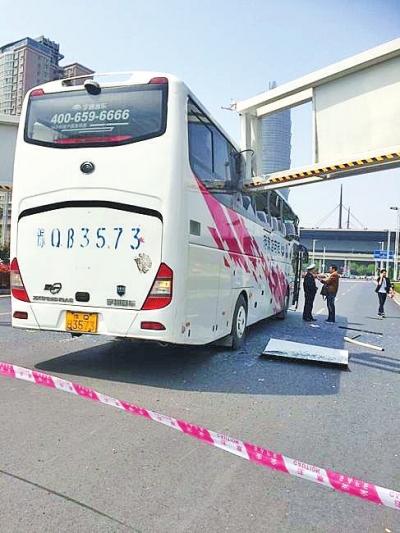 大巴司機(jī)分神撞上限高桿 11名乘客受傷