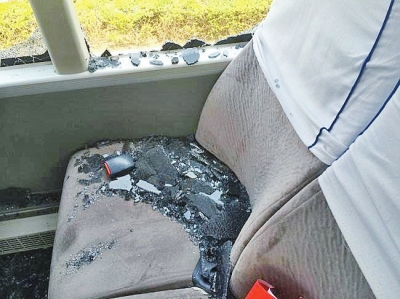 車(chē)座上都是碎玻璃