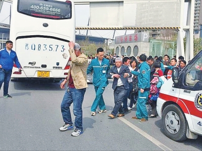 出現(xiàn)場(chǎng)的一名急救醫(yī)生說(shuō):“車(chē)上受傷的乘客共有11人,我們醫(yī)院救護(hù)車(chē)先后去了三次,拉回來(lái)8名,30號(hào)急救站拉走了3名,現(xiàn)在一人受傷較重,其他幾名都在觀察中?!?/p>