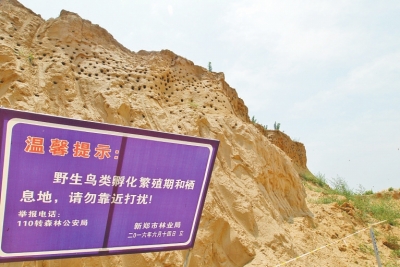 為保護(hù)鳥(niǎo)兒安全度過(guò)繁育期,河南省森林公安局、河南省野生鳥(niǎo)類觀察學(xué)會(huì)在土堆前立了一塊警示牌,上書(shū)“鳥(niǎo)類棲息地,禁止靠近”,呼吁社會(huì)善待候鳥(niǎo)。而新鄭市林業(yè)局林政科有關(guān)人員在接受記者采訪時(shí)亦稱:“我們只要一接到群眾舉報(bào),立即會(huì)同公安機(jī)關(guān),盡快把這些燕子集中育雛地保護(hù)起來(lái),除告知施工單位停工外,還在一定區(qū)域內(nèi)拉起警戒線,禁止無(wú)關(guān)人員驚擾燕子孵卵育雛,今年新鄭市總共有三處燕子育雛地被集中保護(hù),新鄭市保護(hù)崖沙燕的善舉曾得到過(guò)中央級(jí)媒體的表?yè)P(yáng),接下來(lái)我們會(huì)再接再厲,爭(zhēng)取做得更好。”