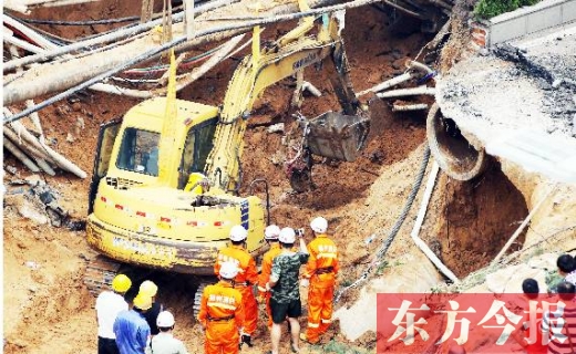 塌方發(fā)生時(shí),一男一女被民警和熱心市民救出。目擊者稱(chēng),坑中仍有一名女士和小孩,但警方經(jīng)過(guò)排查,除了名叫張帆的女士,尚未發(fā)現(xiàn)有人員失蹤。今報(bào)三批記者輪班蹲守現(xiàn)場(chǎng),截至3日2時(shí),救援在經(jīng)歷了近30個(gè)小時(shí)后,尚未找到張帆。□東方今報(bào)記者 夏萍 見(jiàn)習(xí)記者 靳亞?wèn)| 宋迎迎 攝影 首席記者 袁曉強(qiáng) 張曉冬 沈翔 邱琦