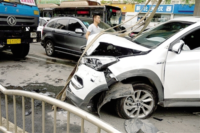 目擊者范先生稱:“當時由南向北是綠燈,由東向西是紅燈,白色轎車在華山路上由南向北直行,路過我身邊時,轎車前有一老太太手里提著東西也在由南向北走,轎車速度有點兒快,我看到司機在車內(nèi)亂晃腦袋,看樣子司機像是突然犯病,行為很不正常,車子像瘋了一樣向東北角開去,還有可大的剎車聲?!?/p>