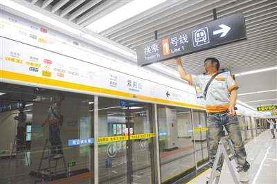 記者在沿線16個(gè)車(chē)站看到,除東大街站由于開(kāi)工最晚,目前仍在進(jìn)行最后裝修施工外,其他車(chē)站內(nèi)部裝修工作已基本完成。