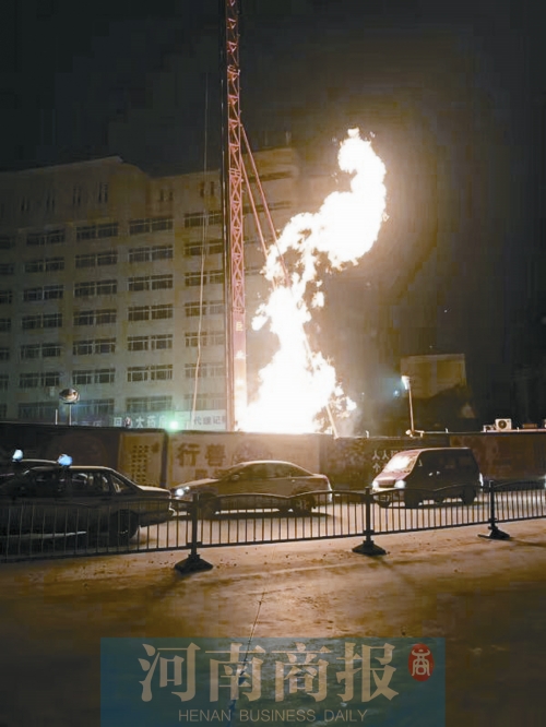 9日下午,鄭州黃河路地鐵5號(hào)線一處工地施工時(shí),燃?xì)夤艿辣煌跀?,現(xiàn)場(chǎng)躥起10余米高的火焰。據(jù)了解,被挖斷的管道此前已配合地鐵施工進(jìn)行過(guò)改造,且施工方有圖紙。