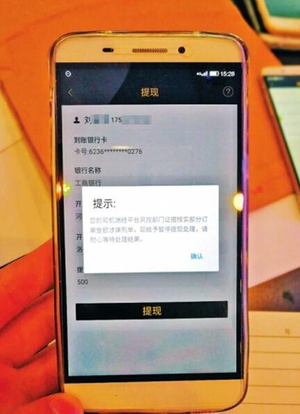 司機提現(xiàn)時,賬戶被禁止提現(xiàn)。