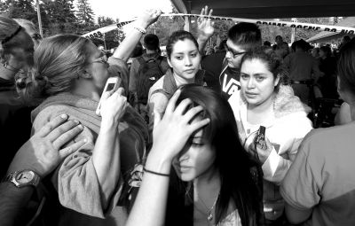 10月24日,在美國(guó)華盛頓州西雅圖市,學(xué)生和家長(zhǎng)在槍擊案發(fā)生后團(tuán)聚。新華社發(fā)