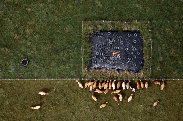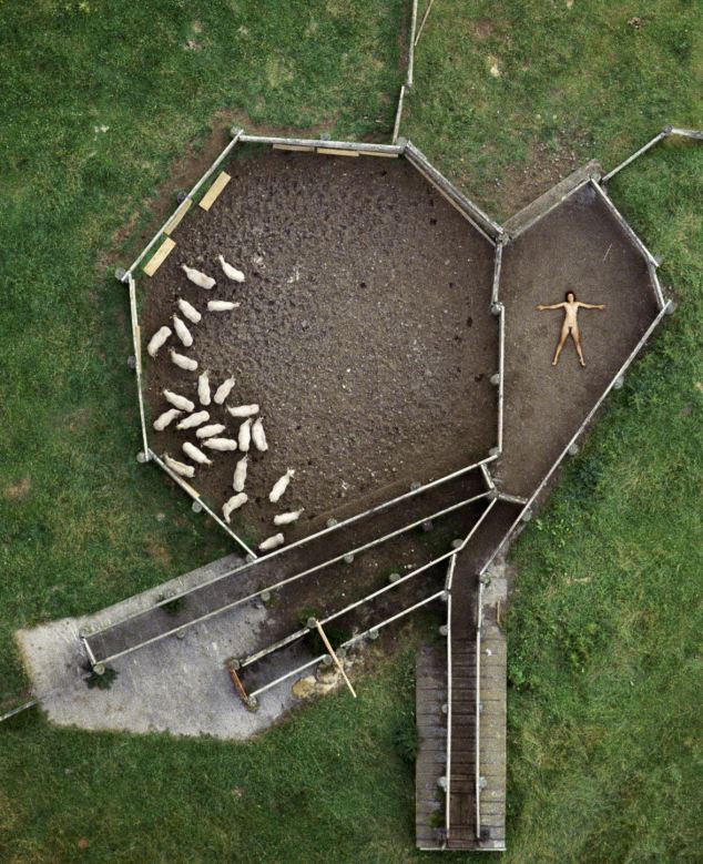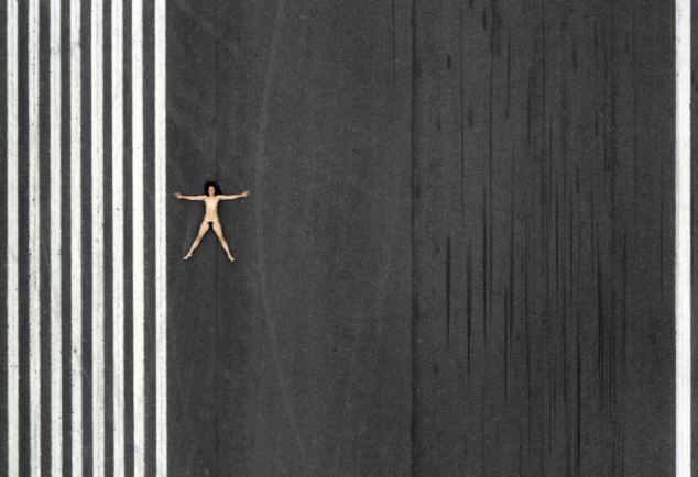 據悉,1984-1987年間,約翰利用直升機航拍了一組妻子的裸體照片。妻子在農田、養(yǎng)豬場、機場跑道、海邊、鐵軌及移動的汽車上一絲不掛,舒展著四肢。他說:“在那些地點拍攝裸體照片,可以反襯出人類在大千世界的渺小和微不足道?!?/p>