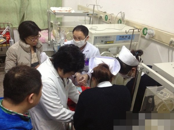 3月20日,北京大雪。據(jù)網(wǎng)友稱,在北京中關(guān)村鼎好樓下,一20歲左右女子產(chǎn)下男嬰,隨后將孩子放三輪車上獨自離開。新生兒光著在零下溫度里躺40多分鐘,網(wǎng)友與同事發(fā)現(xiàn)后送和平里醫(yī)院搶救。因凍得太嚴(yán)重,專門負(fù)責(zé)救助棄嬰的醫(yī)院無呼吸機,最終嬰兒離世。圖為3月20日,北京,嬰兒在醫(yī)院接受治療。