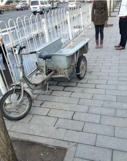 3月20日,北京,嬰兒被放在這個平板車內(nèi)。
