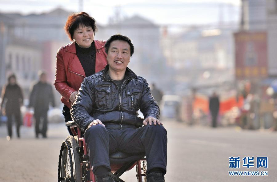 一個(gè)妻子不離不棄的感人故事,在安徽省舒城縣曉天鎮(zhèn)幾乎家喻戶曉。 2006年初夏,曉天鎮(zhèn)街道的汪世俊在安裝廣告牌時(shí),不幸從腳手架上摔了下來,造成下肢癱瘓。妻子張先琴始終不離不棄,8年如一日,未曾走過親戚,出過遠(yuǎn)門。丈夫癱瘓后的頭3年里,每隔半個(gè)鐘頭就要翻一次身,還需要及時(shí)更換尿布,張先琴沒有睡過一個(gè)安穩(wěn)覺。為了防止肌肉萎縮,張先琴想辦法將繩子系在丈夫腰間,協(xié)助他進(jìn)行康復(fù)訓(xùn)練。從一個(gè)健全人變成殘疾人,巨大的心理落差使汪世俊脾氣變得暴躁,他常常發(fā)無名火,可每每這時(shí),張先琴總能默默忍受。張先琴說:丈夫能有說有笑,沒有失去生活的信心,這比什么都重要。 新華社發(fā)(呂務(wù)農(nóng) 攝)