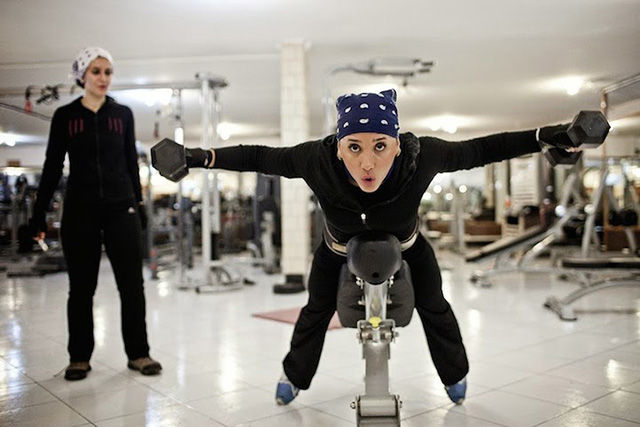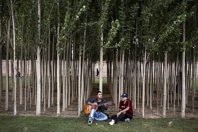 盡管照片中的人顯得很輕松,但對拍攝照片的Fatemi來說卻十分不易。這個攝影師花了數(shù)月才被允許進入女性健身房、發(fā)廊等。很多人不愿意被拍到臉,怕被認出來;很多人取消了預(yù)約,怕因此丟了工作。雖然存在著種種困難,F(xiàn)atemi還是取得了驚人的成果,為伊朗和外界拍攝了包羅萬象的精美照片。圖為私人搖滾音樂會。搖滾音樂在這里是被禁止的,所以這類表演一般都很隱秘的。