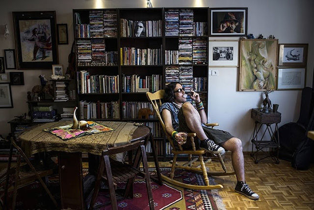 本土藝術(shù)家Eylya在他房間內(nèi)抽煙喝酒。