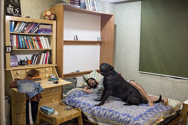 一名男性和他的狗在房內(nèi)休息。狗在這里是不潔的,一般都不是寵物,而且由主人關(guān)在房間內(nèi)。