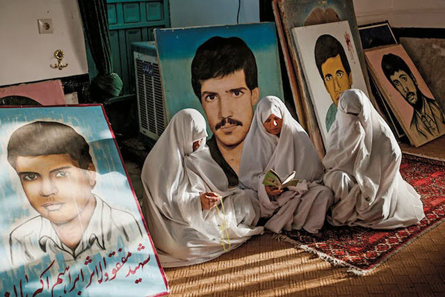 在兩伊戰(zhàn)爭中犧牲的烈士的母親,正在兒子墓地周圍祈禱著,周圍是他們的肖像。