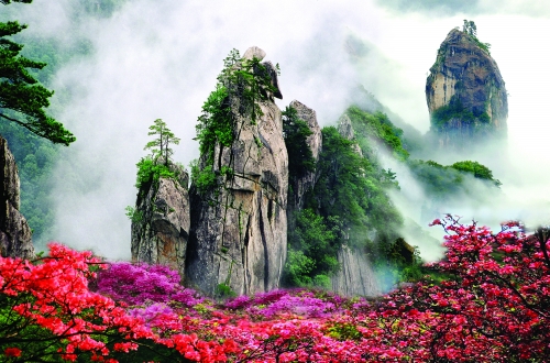 堯山俊俏的山峰、秀美的瀑布、奇異的迎客松、動植物等資源一直深深吸引著廣大游客,特別是春季,堯山山花次第開放,踏青拜佛泡溫泉,在游客中掀起了去堯山旅游的大潮。筆者從堯山景區(qū)了解,堯山杜鵑節(jié)已于4月20日拉開帷幕,今年的杜鵑特別繁茂、艷麗,目前,山門至迎鳳樹附近的杜鵑已全部開放,叢叢紅、粉杜鵑綻放在懸崖上,飽含著堯山的熱情奔放,掩映于叢林中,蘊(yùn)藏著堯山的含蓄與嬌羞。