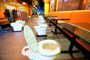 美國洛杉磯一家以廁所為主題的餐廳上周末正式營業(yè),吸引了不少食客。