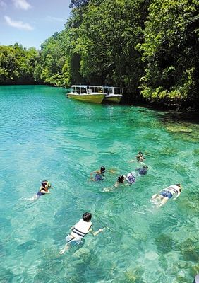 說(shuō)帕勞是一個(gè)水漾的天堂,一點(diǎn)也不為過(guò)。這里不僅以海底景觀聞名于世,被海洋學(xué)家公認(rèn)為世界七大海底奇觀之首,海面景觀也同樣令人贊嘆。由于帕勞的海水清澈無(wú)污染而其海底景觀造型奇特,一會(huì)兒是黑黑的礁石,一會(huì)兒是斑斕的軟硬珊瑚,抑或是細(xì)細(xì)沙礫,還有遠(yuǎn)古時(shí)代沉積的火山灰,這一切都被清澄的海水毫無(wú)保留地映上了海面,令海水有7種不同的顏色,這讓每一位到此地的游客都贊嘆不已,更成為潛水者的勝地。