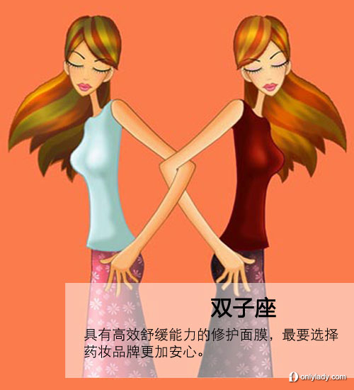 雙子座的女生往往喜好新鮮事物,她們有著很多小技巧小聰明,但卻不夠?qū)R弧O矚g嘗試何種護膚品和彩妝品,不求專一一件,只求豐富多樣,小白鼠似的不斷嘗試各種產(chǎn)品,因而也對肌膚造成了一定的傷害,容易誘發(fā)敏感。