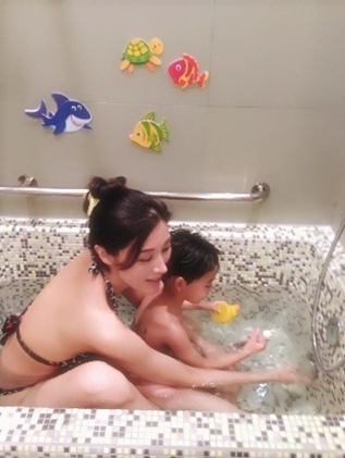 她謂該張照片是由平日照顧囝囝的姐姐(傭人)幫他們拍攝,感覺很健康,丈夫也覺得OK可以上載微博。問何時會教囝囝性教育?她表示會交給丈夫負責,囝囝經常問她一些復雜的問題,她都會叫囝囝問爹地:“爹地什么都識。”