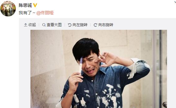 今日(10月21日)上午,陳思誠(chéng)更新微博,曬出一張手拿驗(yàn)孕棒的照片,并艾特佟麗婭稱(chēng)“我有了”,畫(huà)面十分搞笑。