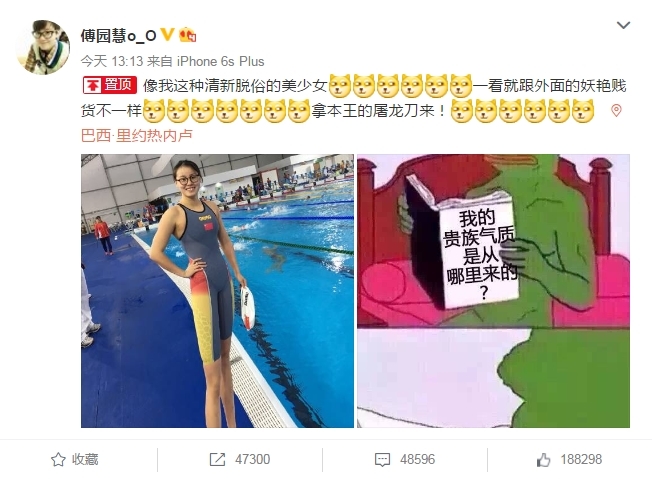 傅園慧被封泳屆諧星 逗逼表情包光速上線