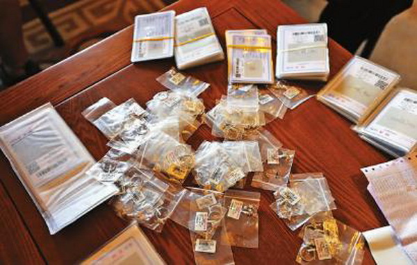 18日上午,工行人民廣場(chǎng)支行員工劉鐵峰從銀行金庫(kù)取出一個(gè)包裹,和南關(guān)區(qū)公安分局清明街派出所民警、老鳳祥銀興珠寶店負(fù)責(zé)人及某快遞公司負(fù)責(zé)人一起打開(kāi),65枚鉆戒赫然在目。原來(lái),這個(gè)包裹是老鳳祥委托某快遞公司投遞,卻被快遞員粗心遺失,又被劉鐵峰家人撿到的。