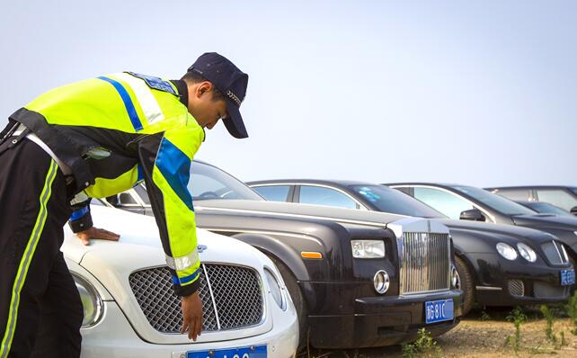 昨日,在沈陽市公安局沈河分局違章違法車輛停車場(chǎng),勞斯萊斯、賓利等平時(shí)難得一見的豪車卻排成了排,它們皆因沒有正規(guī)“身份證”而被查扣。