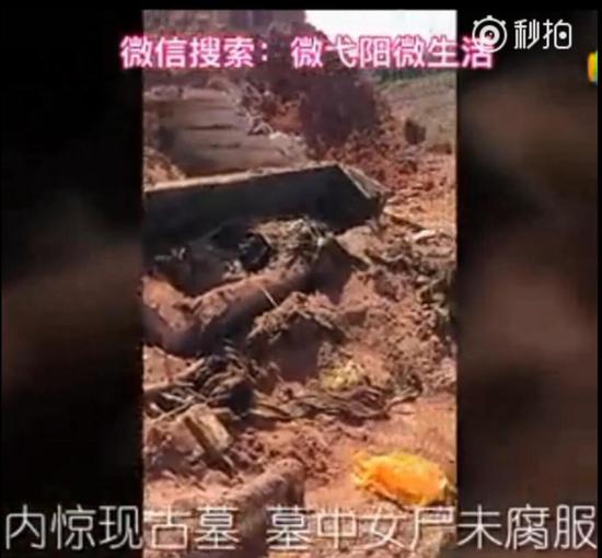 7月28日,在上饒市弋陽縣新看守所建筑工地,挖出一個(gè)古墓,現(xiàn)場(chǎng)掘出一口棺材,并發(fā)現(xiàn)一具保存尚為完好、身著疑似名門貴族服飾的女干尸。而在半年多前,2016年11月7日,同樣在江西上饒,上饒縣石獅鄉(xiāng)王家壩白領(lǐng)小組一處施工工地發(fā)現(xiàn)一處古墓。