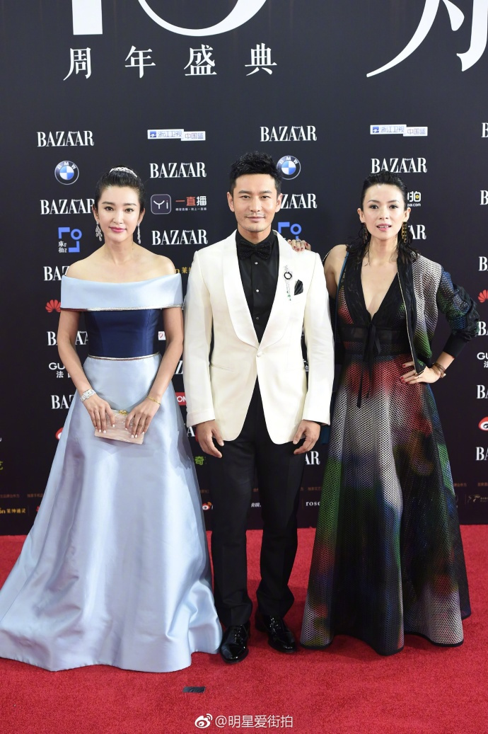 黃曉明一邊一個大花旦,“艷福不淺”??!章子怡穿低胸網(wǎng)紋裙半露香肩展女王氣質(zhì),李冰冰頭戴王冠著一字肩湖藍(lán)公主裙走起甜美風(fēng),我說最佳男閨蜜一定要頒給教主,雖然這張圖把他拍成1米6。