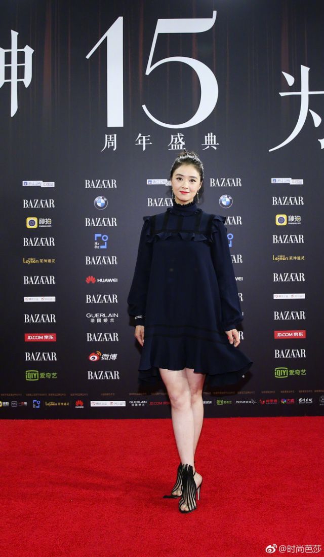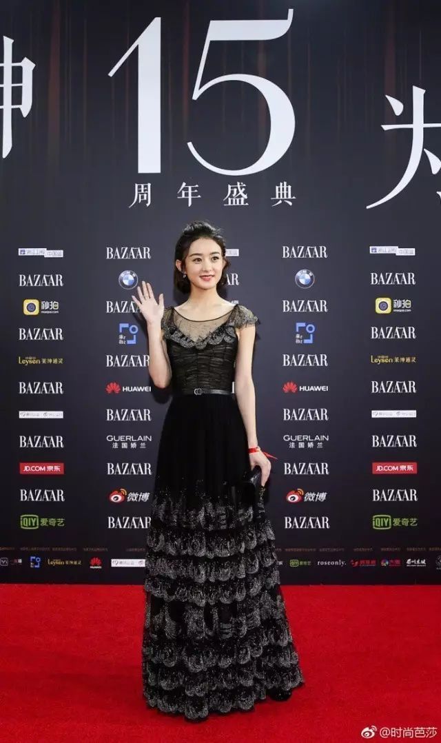 剪了短卷發(fā)的趙麗穎俏皮許多,一身黑色長裙莊重中帶著一絲可愛。