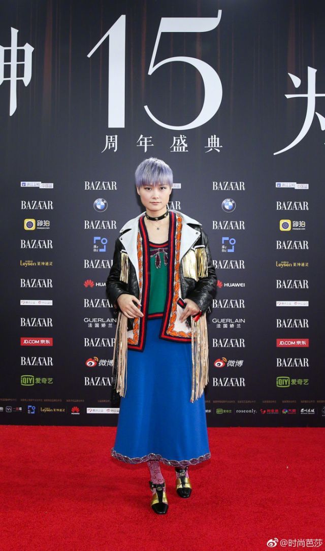 紫色長襪、寶藍(lán)長裙、墨綠上衣、黑皮流蘇外套、奶奶灰短發(fā),混搭玩到這個程度的還有誰?真心敗給李宇春。