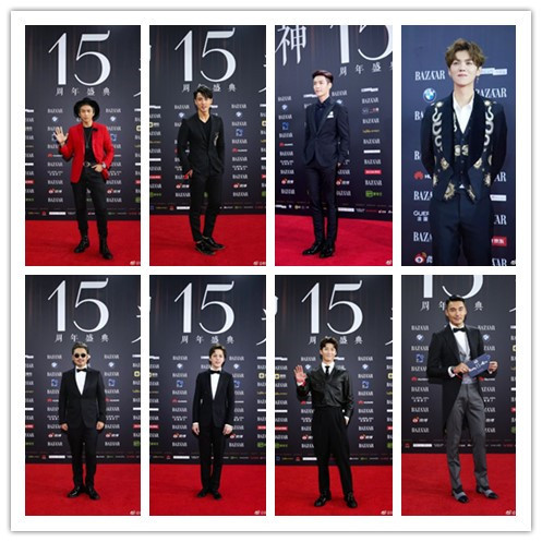 男明星一水的西裝,除了鄧超還有點新意,穿了個紅色的。