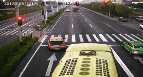 在后視鏡中,楊女士突然看到后面一臺大巴車疑剎不住車,車速甚快,朝前方急行而來,驚慌失措的楊女士出于本能,立即猛踩油門沖紅燈朝左前方沖了出去。