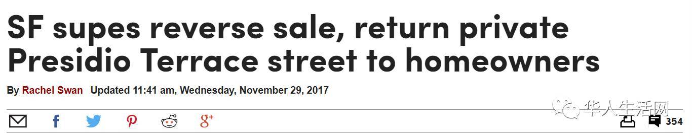 一對(duì)住在硅谷的年輕華裔夫婦以9萬元購得舊金山高尚住宅區(qū)太平洋崗的一條小街道Presidio Terrace,35棟超級(jí)豪宅業(yè)主試圖拿回街道所有權(quán)。舊金山市參事會(huì)昨日就事件舉行聽證會(huì),市參事會(huì)最后以7對(duì)4通過,取消Presidio Terrace街道的買賣。