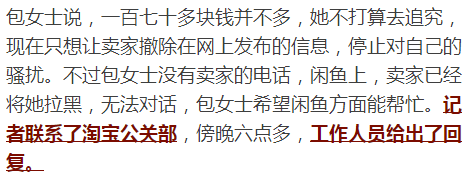 關(guān)于安全鏈的真假,以及為什么同一個(gè)賣家會(huì)有多個(gè)賬號,淘寶方面沒有回復(fù)。包女士向我們反饋說,閑魚方面已經(jīng)聯(lián)系她,說是封停了賣家的所有賬號,出售她孩子的信息,已經(jīng)搜不到了。