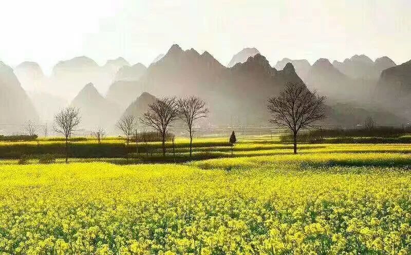 前幾天路過萬峰林時(shí),山邊田里的油菜花也相續(xù)開放了。