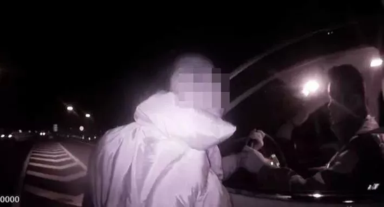 民警打算上車阻攔時,張某飛速跑來,從車窗內(nèi)伸手拉住警車方向盤。