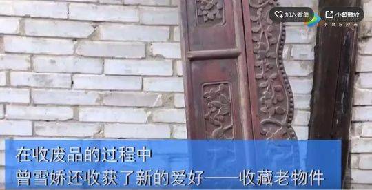 在收廢品的過(guò)程中,曾雪嬌也會(huì)同時(shí)收藏一些老物件。從剛?cè)胄械浆F(xiàn)在,就收到明清的銅錢(qián),還有復(fù)古的煙斗,一顆釘子都沒(méi)有的雕花木門(mén)等各式各樣的小物件,“就像尋寶一樣,你會(huì)在這個(gè)過(guò)程中發(fā)現(xiàn)驚喜,并且樂(lè)此不?!?/p>