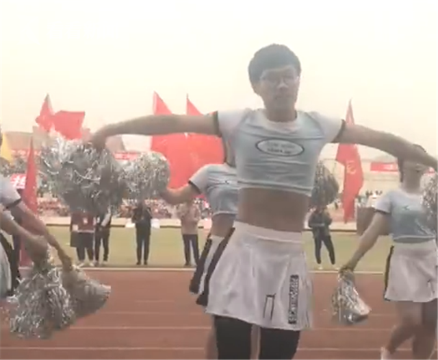 原標題:畫風(fēng)清奇!鄭州大學(xué)一男生穿裙子跳啦啦操爆紅