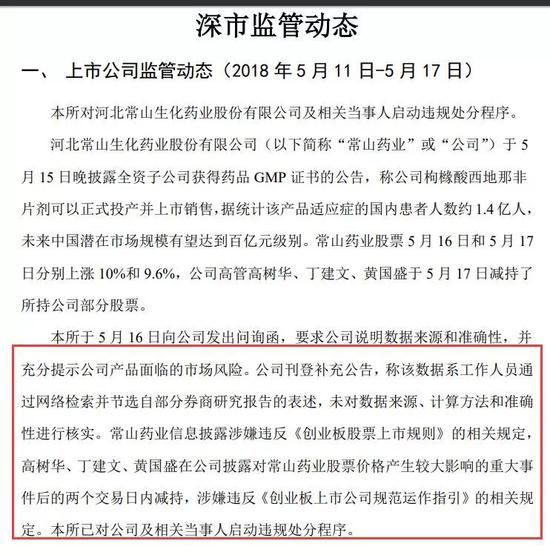 公眾質疑也得到了有關方面的呼應。據報道,5月18日晚間,深交所官方微信發(fā)布公告稱,深交所已經對“常山藥業(yè)”及相關當事人啟動違規(guī)處分程序。