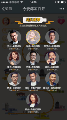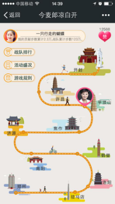 在河南十大名嘴戰(zhàn)隊中選擇一個你要支持的戰(zhàn)隊加入,即可為該戰(zhàn)隊捐贈當(dāng)天的微信運動步數(shù),該戰(zhàn)隊獲得用戶捐贈步數(shù)后可在規(guī)定的線路中前進(jìn),到達(dá)終點為獲勝。