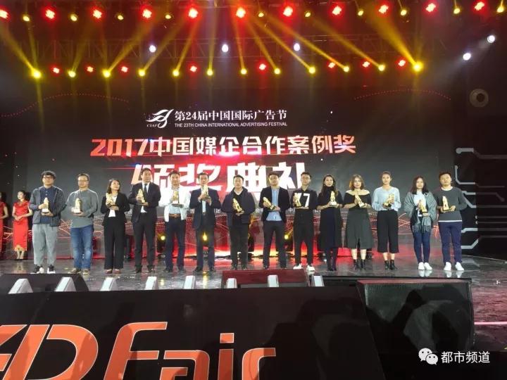 在2017中國廣告長(zhǎng)城獎(jiǎng)·廣告主獎(jiǎng)之媒企合作案例獎(jiǎng)?lì)C獎(jiǎng)現(xiàn)場(chǎng),河南都市頻道榮獲6項(xiàng)營(yíng)銷大獎(jiǎng)。都市頻道團(tuán)隊(duì)?wèi){借廣告與節(jié)目的融合、專業(yè)的服務(wù)水準(zhǔn)、勇于創(chuàng)新營(yíng)銷策劃能力,獲得“中國長(zhǎng)城獎(jiǎng)2017年度金伙伴獎(jiǎng)”。