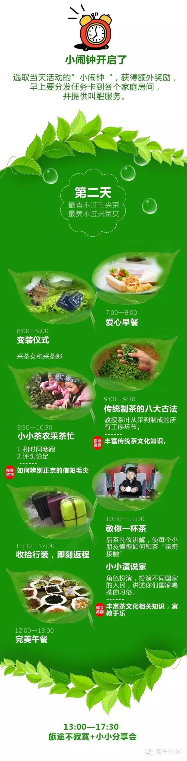 我們不只是單純的采茶,會有品茶禮儀講解,讓孩子對茶文化有一定的了解,你可以采茶,炒茶,品嘗茶,學(xué)習(xí)茶文化。還會提供采茶頭巾以及小竹筐,增強(qiáng)活動儀式感,讓孩子和家長更好的融入環(huán)境之中。同時現(xiàn)場有角色扮演互動環(huán)節(jié),讓孩子寓教于樂,不僅僅走馬觀花走個采茶的流程而已。