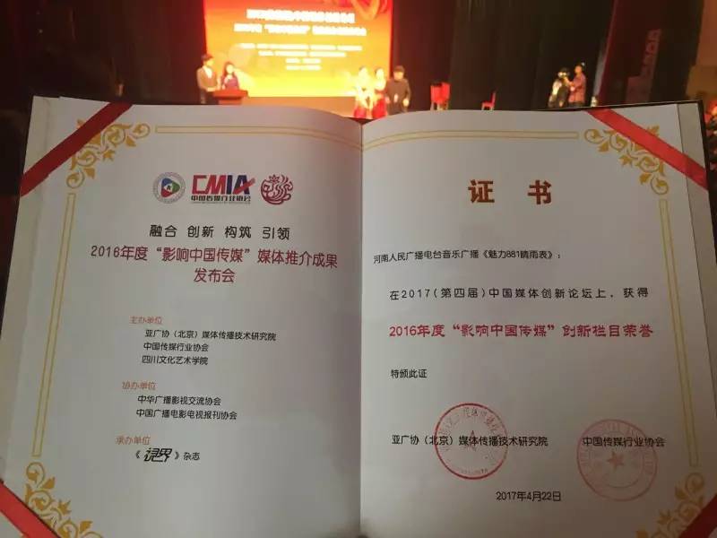 魅力881河南音樂廣播獲“最具創(chuàng)新力媒體”獎(jiǎng)