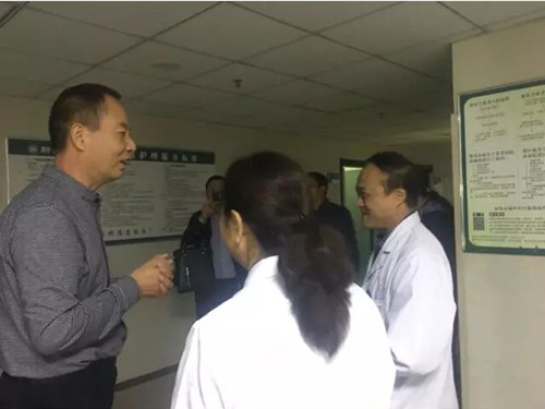 孫和平主任和新鄭中醫(yī)院的領(lǐng)導(dǎo)溝通曉夢(mèng)媽媽的病情并對(duì)醫(yī)護(hù)人員表示感謝