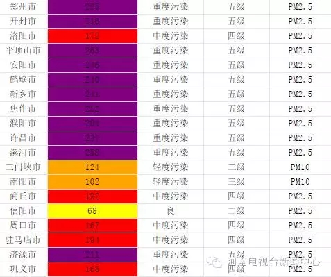 從即時起至16日,鶴壁、濮陽、鄭州、開封等15個省轄市和鞏義、蘭考、汝州、鄧州、永城、固始、鹿邑、新蔡等8個省直管縣(市)啟動不低于黃色預(yù)警的重污染天氣應(yīng)急響應(yīng)。
