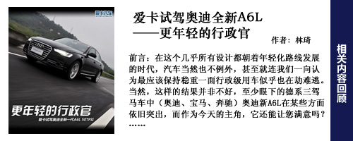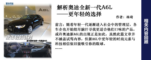 編輯點評:新一代奧迪A6L外觀更加年輕,目標(biāo)用戶群會進(jìn)一步下探,而A6L更大的改變在與內(nèi)飾上,更寬敞的空間,更豪華的內(nèi)飾,更加具有科技含量的電子配置。動力總成和四驅(qū)系統(tǒng)上變化較少,好在奧迪A6L的用戶群對此并不十分關(guān)心。頂著“第一官車”的光環(huán),有政府采購做保障,奧迪A6L并不愁銷路,不過奧迪希望能逐步降低對公務(wù)市場的依賴,以降低采購政策改變所帶來的風(fēng)險。
