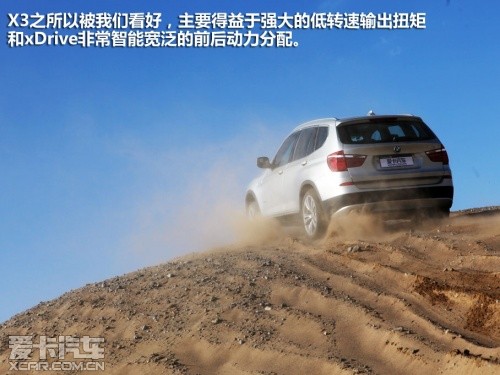 或許是奧迪Q5完成測(cè)試的過程比較順利,我們對(duì)接下來即將登場(chǎng)的寶馬X3也普遍比較看好,這或許就是思維慣性帶來的固定套路吧。然而在實(shí)地測(cè)試過程中,這臺(tái)X3攀爬沙丘的過程卻沒有表現(xiàn)出它在公路上所煥發(fā)出的霸氣。400?!っ椎淖畲笈ぞ卦诔鞘械缆分校踔猎诟咚俟飞隙际菬o與倫比的,但移步至眼前狂風(fēng)大作的沙丘,這400牛·米的扭矩則像是心有余而力不足的悲情英雄。